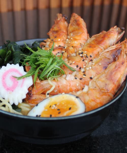 "El plato de Ebi Teriyaki tiene sus raíces en la gastronomía japonesa, específicamente en la técnica culinaria del teriyaki. Esta técnica se basa en marinar y luego asar la carne, pescado o mariscos en una salsa de soya dulce con sake y mirin. El Ebi Teriyaki es un plato de camarones que se cocina en esta salsa de teriyaki y se sirve con arroz, verduras y a veces también con fideos soba o udon. El resultado es una deliciosa combinación de sabores dulces y salados que ha sido popular en la gastronomía japonesa durante siglos y ha ganado seguidores en todo el mundo."